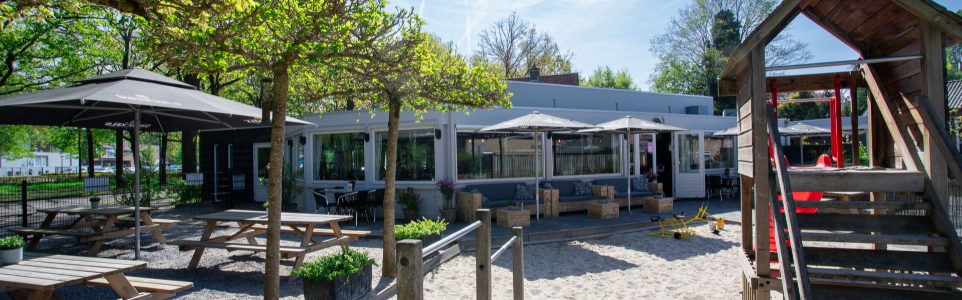 Bij goed weer is ons zonnige terras met uitzicht op het park de ideale plek om te genieten van een kop koffie, een lunch of iets lekkers tussendoor. Voor fietsers is er een oplaadpunt voor elektrische fietsen. Voor gezinnen is er een speciale binnen- en buitenspeeltuin, waar kinderen kunnen spelen.